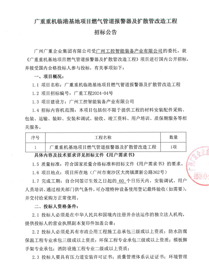 廣重重機(jī)臨港基地燃?xì)夤艿缊缶骷皵U(kuò)散管改造工程項目招標(biāo)公告