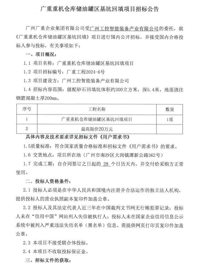廣重重機(jī)倉庫儲油罐區(qū)基坑回填項(xiàng)目招標(biāo)公告