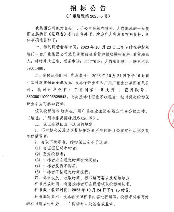廢舊金屬物資處置(廣重資置2023-5號(hào))